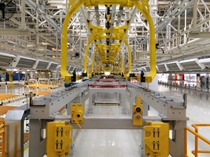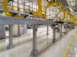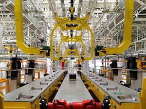 該工廠的生產節拍為30JPH,是沃爾沃在中國的第二個工廠,主要用以生產S90、XC90車型。合裝工位采用整體浮動的半自動合裝,合裝線輸送設備采用雙邊驅動的重型滾床,電機第一次選擇Nord品牌。該工廠合裝托盤在成都工廠合裝托盤基礎上進行了局部更新設計,該設計全部有博銳提供。