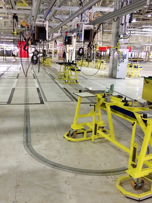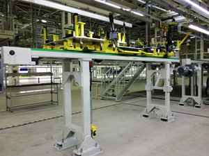 該工廠的生產(chǎn)節(jié)拍為35JPH,是北京奔馳汽車用以生產(chǎn)GLA車型的工廠。合裝線的合裝和擰緊采用半自動的設備,工藝裝配要求和安全級別較高。該工廠合裝線高度還原了奔馳在匈牙利工廠的設計,同時保證了原有合裝裝配工藝,得到了客戶的肯定。